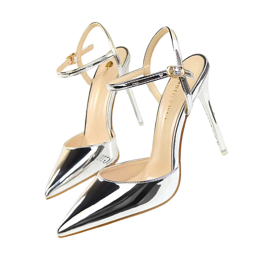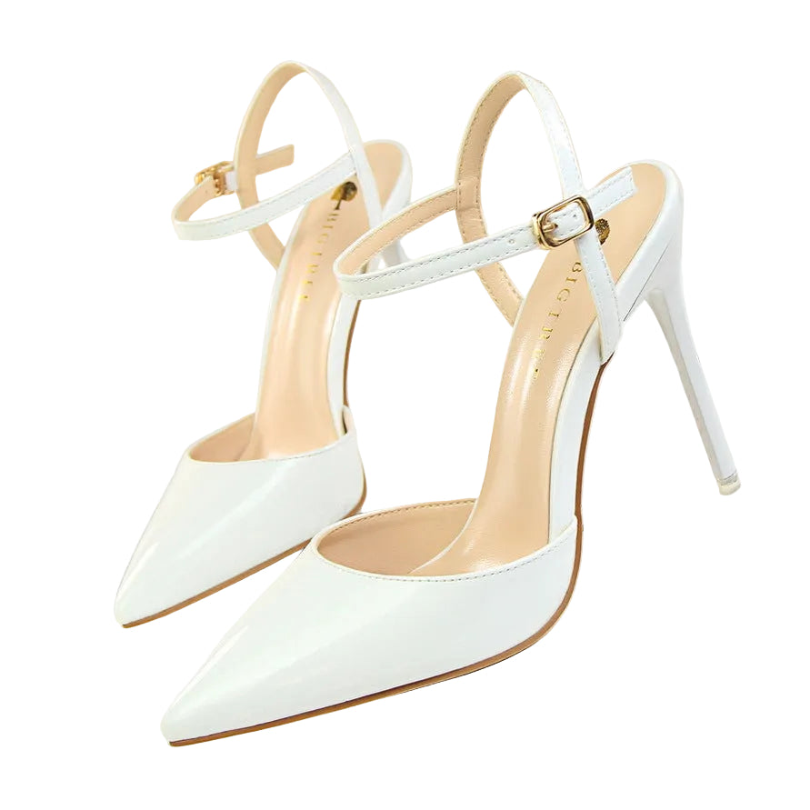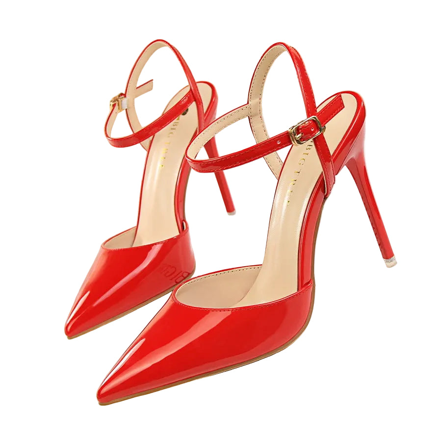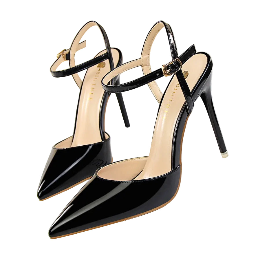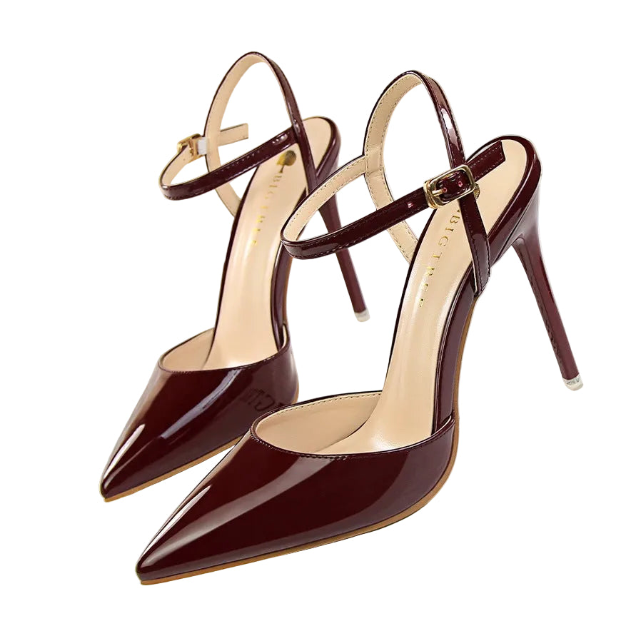 Shallow Mouth Pointed Patent Leather Heels