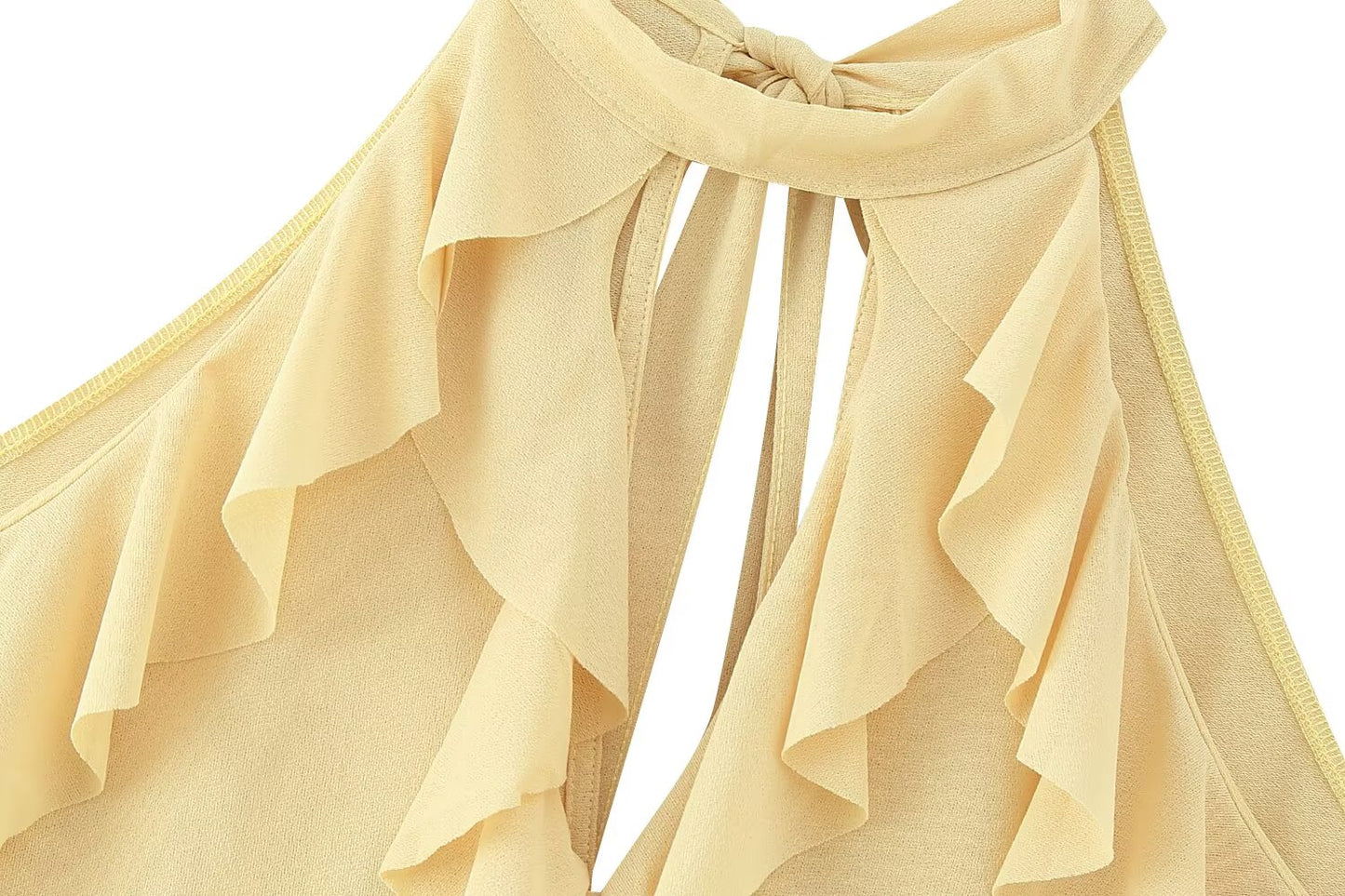 Rock a look that's equal parts fun and fabulous with this sleeveless blouse boasting eye-catching ruffle details. Whether you're dressing it up for a night out or keeping it casual with your favorite jeans, this piece brings the perfect dose of whimsy to your wardrobe. The breezy, sleeveless design keeps you cool and comfortable, while those playful ruffles steal the show. Throw it on and watch heads turn—style has never been this effortless!